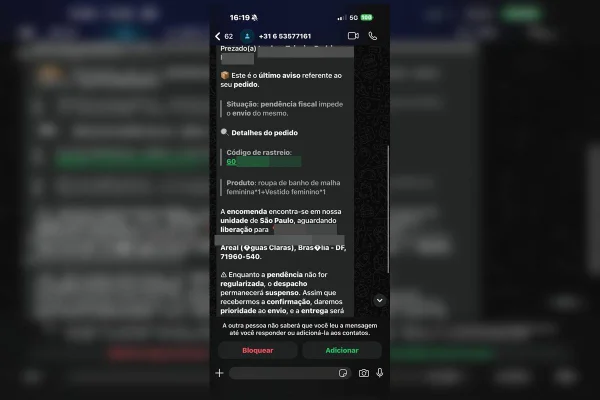 O golpe funciona da seguinte maneira: após a compra no site, o cliente recebe uma mensagem via WhatsApp, geralmente de um número internacional. Os golpistas se passam pela transportadora oficial da entrega e, de posse de todos os dados da vítima, informam sobre uma falsa "pendência fiscal" no valor de R$ 37,23 para liberar o produto, ameaçando leiloar a encomenda caso o pagamento não seja feito.